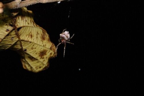 気温10℃。だいぶ寒くなってきた。 ムツトゲイセキグモの活動も終盤である。4つ球の投げ縄を作っていたが、大きさが不揃いで、4つの内3つはだいぶ小さい